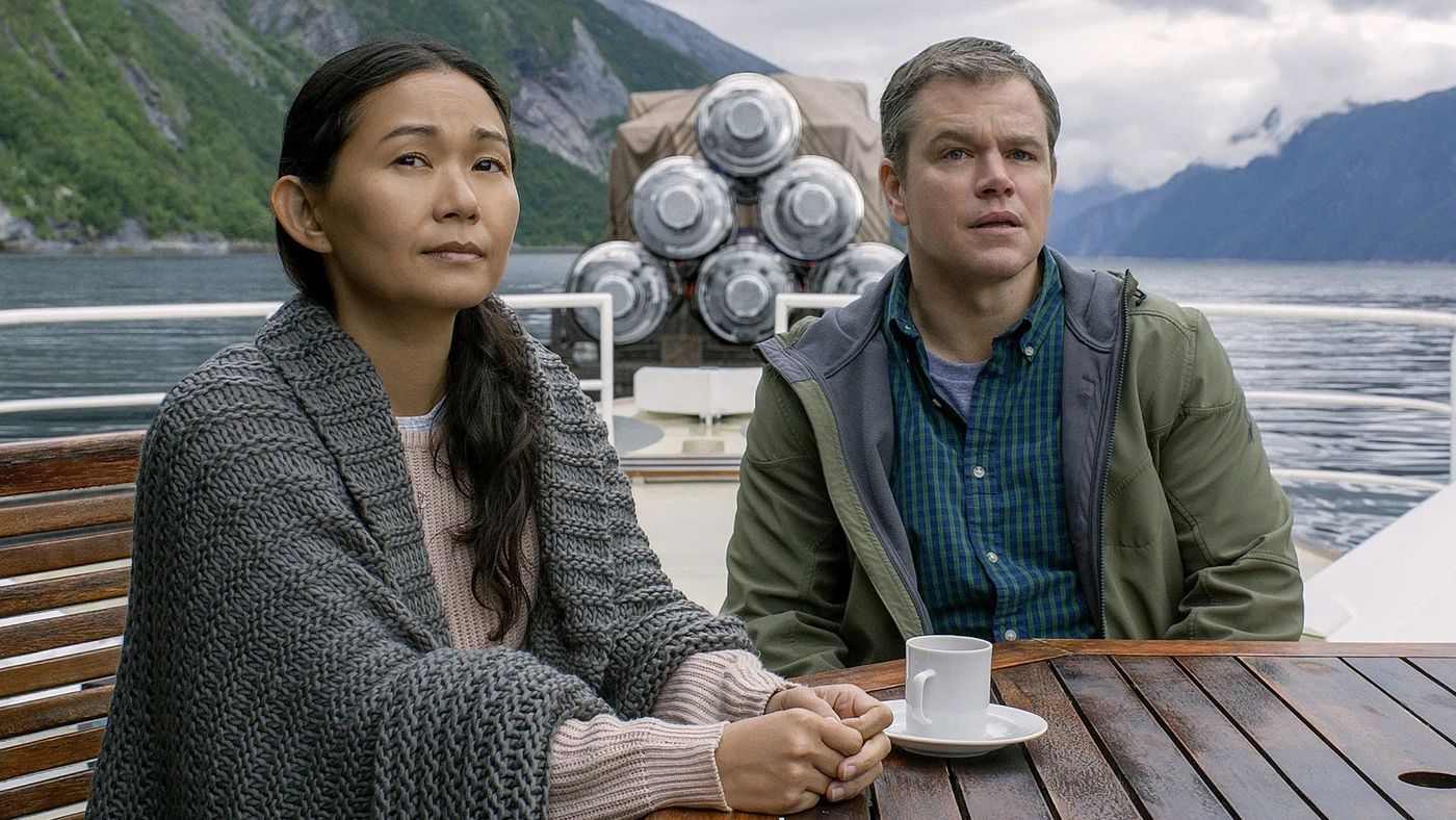 Als wetenschappers een manier ontdekken om mensen te laten krimpen tot twaalf centimeter om overbevolking tegen te gaan, besluiten Paul en zijn vrouw Audrey hun drukke leven achter zich te laten en in een kleine gemeenschap te gaan wonen.