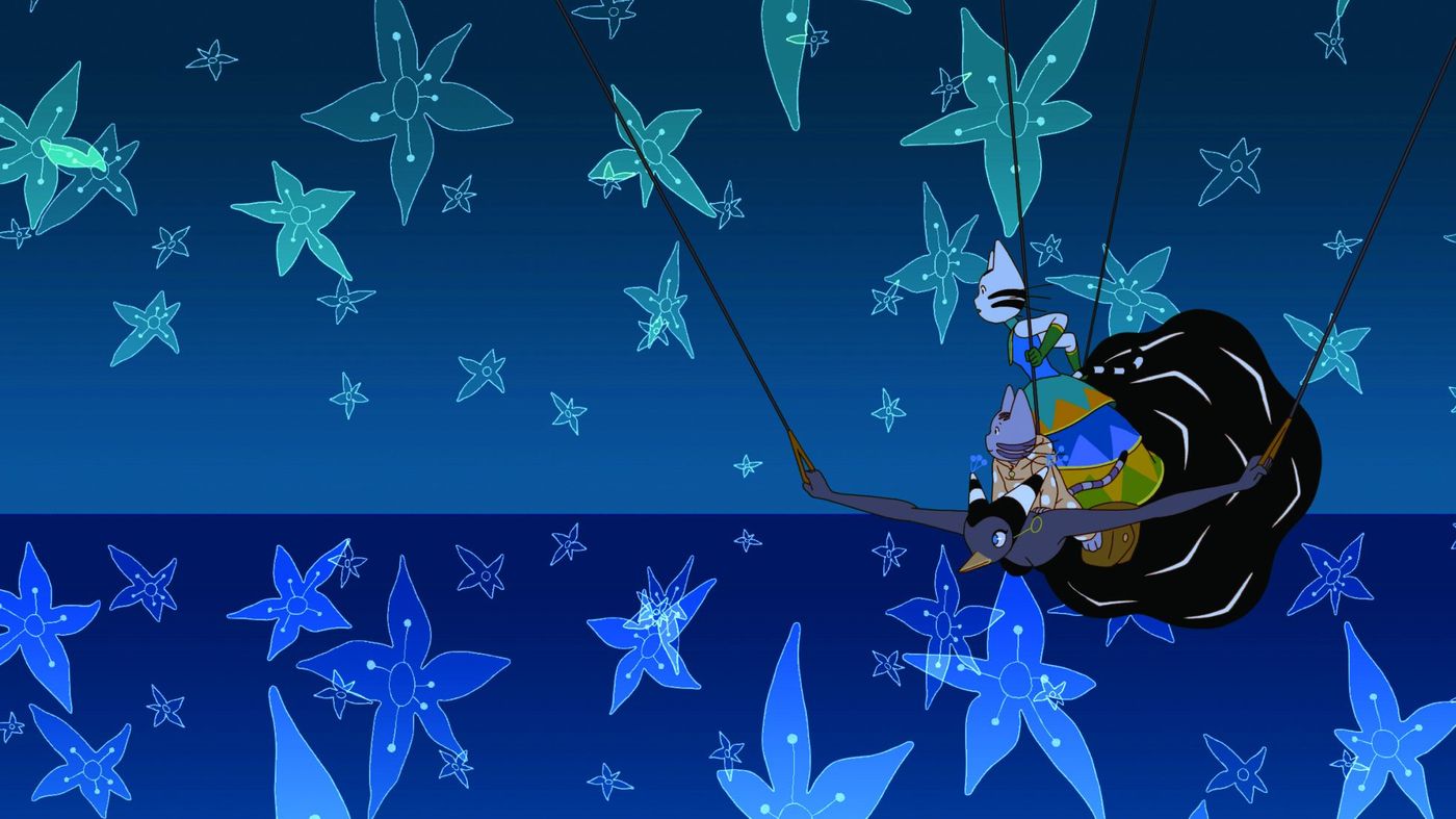 Juliette en Carmen, twee onverschrokken zusjes van vier en acht jaar, ontdekken een geheime doorgang naar Le Royaume des Courants d'Air, hun lievelingsboek. Veranderd in katten en van elkaar gescheiden, zullen ze stoutmoedig en gedurfd moeten zijn om de weg terug te vinden.